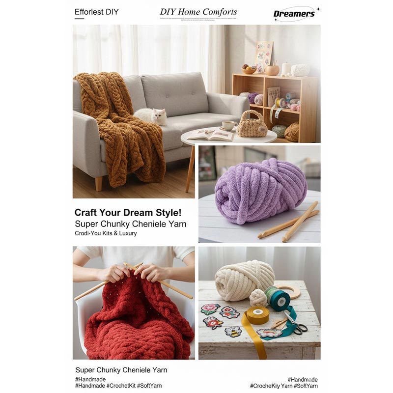 Hypoalergenic & Craiceann-Friendly: Go hiomlán saor ó lint agus milis ar an gcraiceann, an Teddy Chunky 3cm seo Is é Snáth Chenille lomra an rogha iontach do blaincéid leanbh, piliúir céadfacha, agus gabhálais peataí.